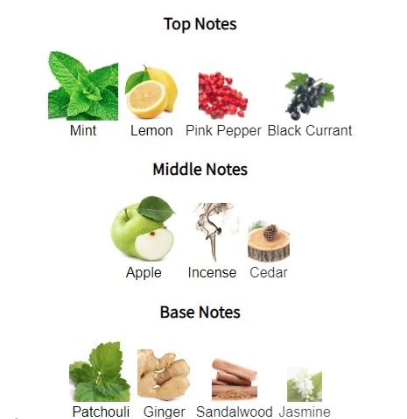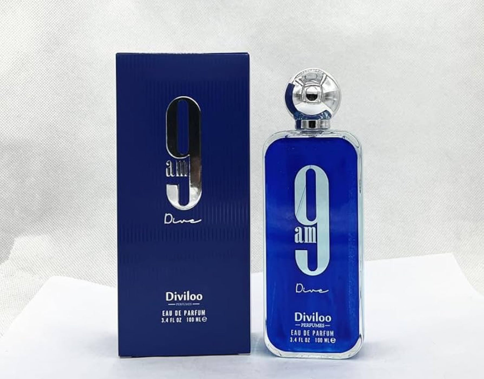 The perfume, Diviloo 9 AM Dive, has a fresh and aromatic aquatic scent with top notes of lemon, mint, black currant, and pink pepper. Its heart features notes of apple, cedar, and incense, while its warm, grounding base consists of patchouli, sandalwood, jasmine, and ginger.